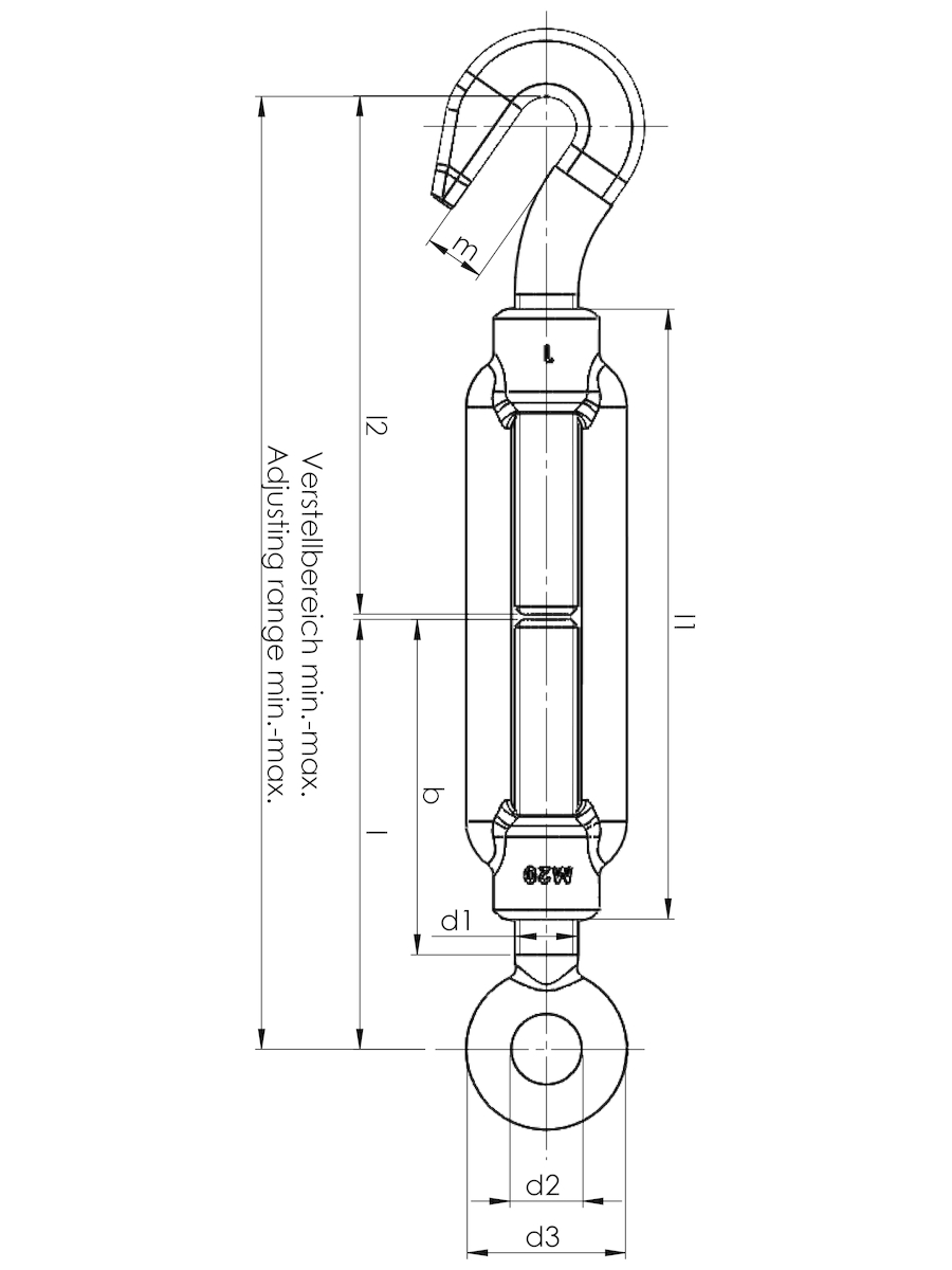 - 1x Spannschloss Haken-Öse M10 verzinkt