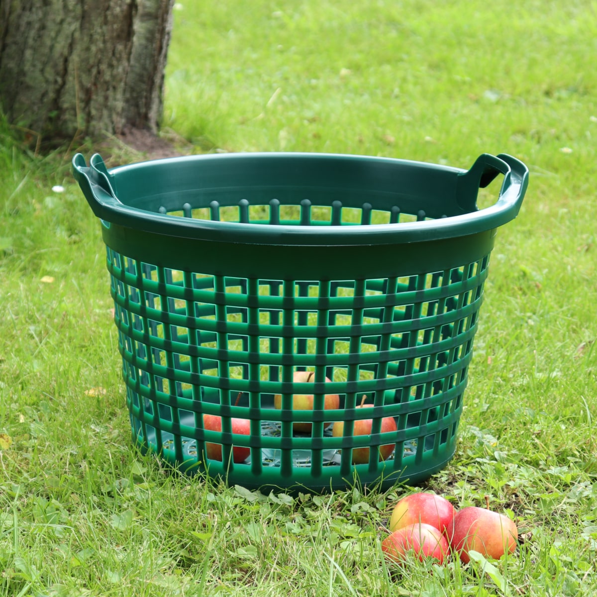 Unser Gartenkorb wird in Deutschland und der Umwelt zuliebe aus recyceltem Kunststoff gefertigt. Der Korb verfügt über zwei praktische Handgriffe, mit deren Hilfe er sich einfach transportieren lässt. Der Allzweckkorb zeichnet sich besonders durch seine hohe Stabilität und Tragfähigkeit von bis zu 15 kg und seine vielseitige Verwendung in Haus und Garten aus. Dies spart Geld bei der Anschaffung und Platz im Gartenschuppen. Er ist z.B. perfekt als Erntekorb sowie den Transport und Aufbewahrung von Obst und Gemüse, als Wäschekorb im Haushalt sowie für Grünabschnitte und andere Gartenabfälle geeignet. Die offene Struktur des Mehrzweckkorbes gewährleistet eine optimale Belüftung und ermöglicht eine lange Haltbarkeit der darin aufbewahrten Lebensmitttel. Durch die stapelbare Form lassen sich die Körbe platzsparend unterbringen. Erleichtern Sie sich die Arbeit mit unserem praktischen Universalkorb.