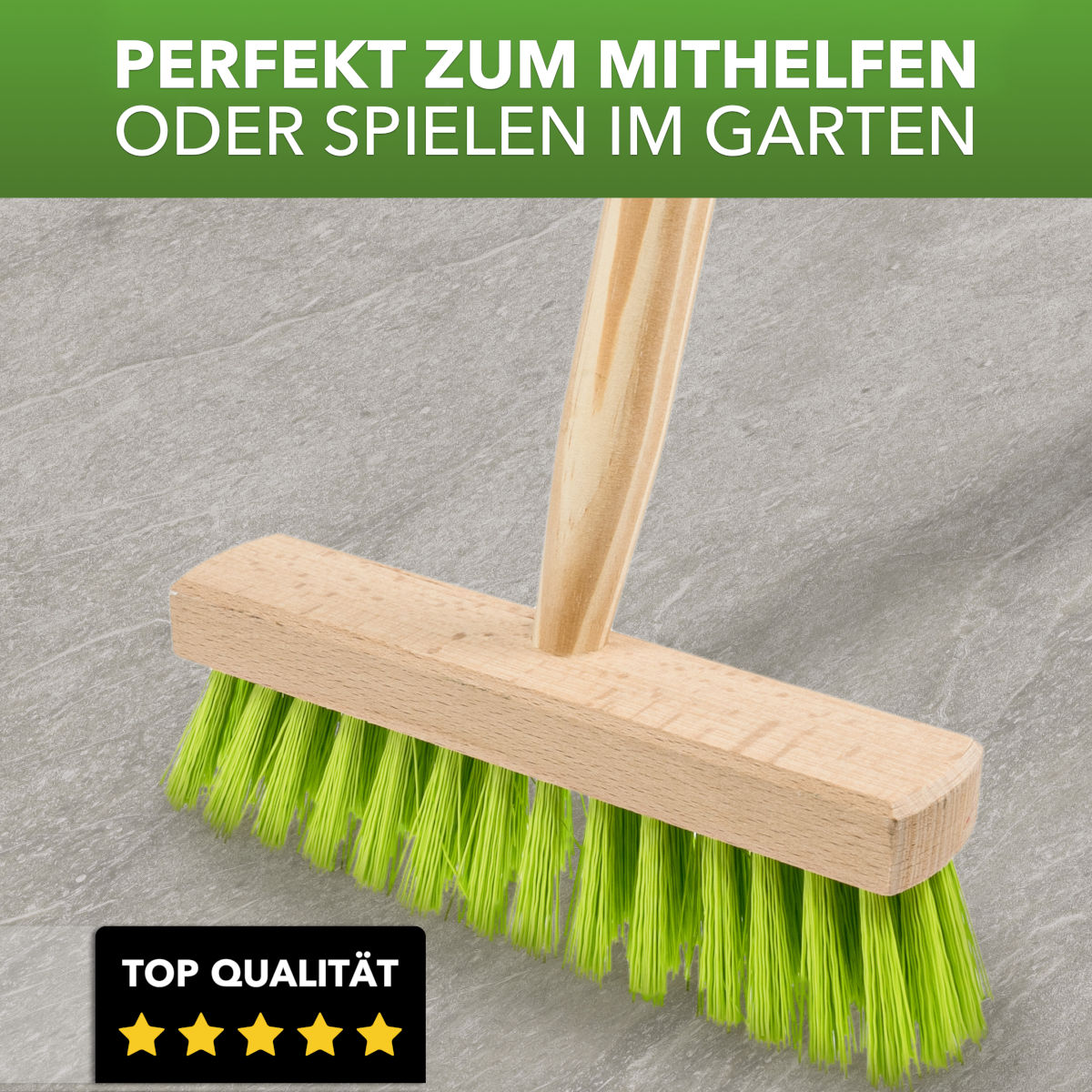 Der stabile Holzstiel liegt gut in kleinen Händen, während die flexiblen Kunststoffborsten für effektives Fegen sorgen. Der Besen ist leicht, robust und somit perfekt auf die Bedürfnisse kleiner Gärtner und fleißiger Helfer abgestimmt. Dank abgerundeter Kanten und unbedenklicher Materialien ist jederzeit für sicheres Spielen gesorgt.