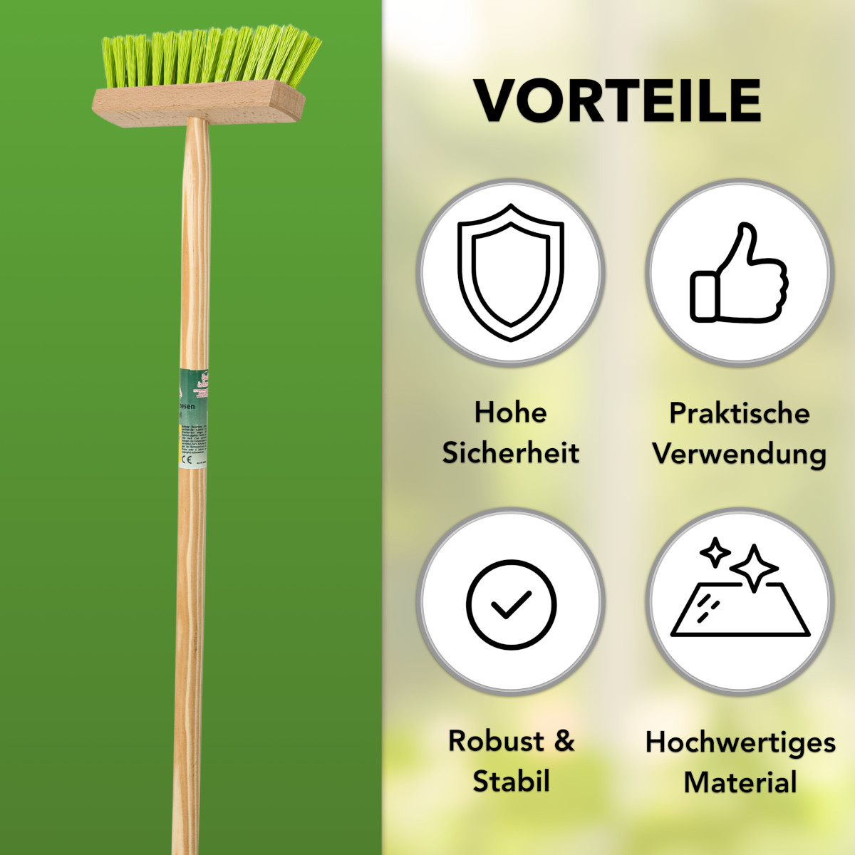 - Robuster Holzstiel mit langlebigen Kunststoffborsten