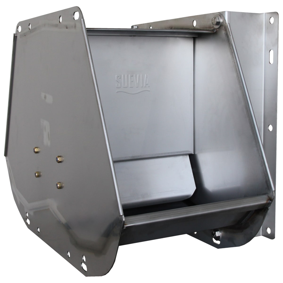 Die Doppel-Ventil-Trogtränke Mod. 520 ist komplett aus rostfreiem Edelstahl gefertigt und ideal für Laufställe geeignet, da sie platzsparend und selbstreinigend ist. Die Doppel-Tränke ermöglicht es zwei Tieren gleichzeitig Wasser aufzunehmen. Dadurch werden Verdrängungskämpfe, wie sie an Längströgen enstehen können, vermieden. Die Tränke ist nach oben weitgehend abgedeckt, wodurch eine Verschmutzung reduziert wird. Zusätzlich werden Futterreste durch das zulaufende Wasser und die spezielle Form der Tränkeschale aufgespült und von den Tieren selbst wieder aufgenommen. Die Ventilbetätigung erfolgt über eine breite und leichtgängige Ventilklappe. Das gewichtsbelastete Ventil kann sowohl für Hochdruck als auch für Niederdruck eingestellt werden. Das Tränken der Tiere erfolgt ruhig uns zügig durch einen hohen Wasserzufluss von bis zu 30 l/min. Die Befestigung der Tränke ist entweder an der Wand oder an Rohren möglich. Der Einbau einer Zusatzheizung, einer Ventil-Heizung sowie der Anschluss an eine Ringleitung ist mit entsprechendem Zubehör möglich.