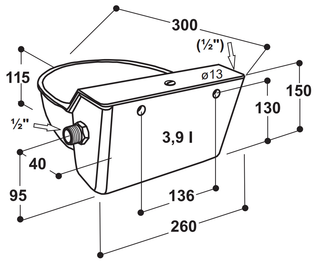 - Anschluss: 1/2 Zoll AG, rechts oder links
