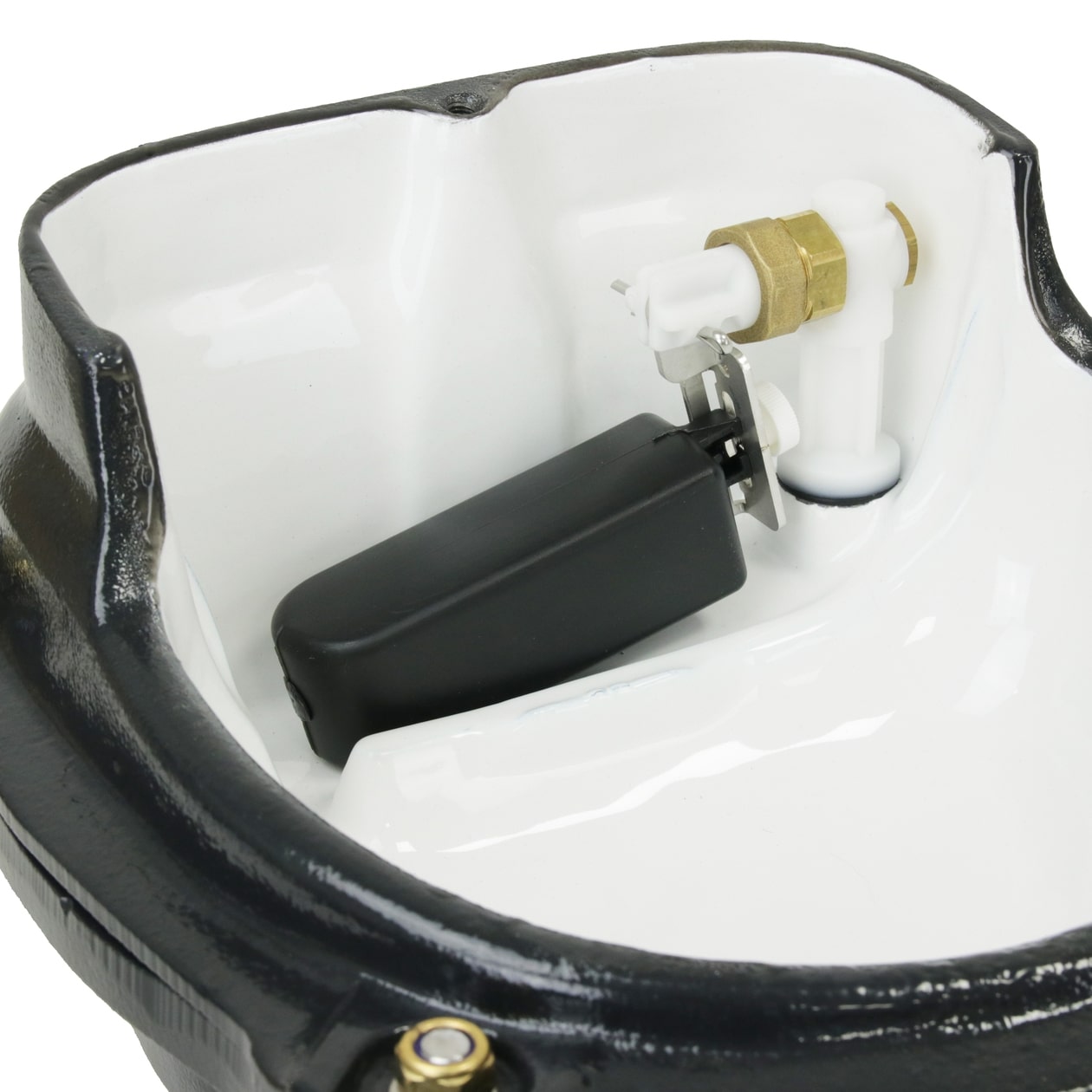 Das Heizbare Schwimmer-Tränkebecken Mod. 43A Sibiria ist aus Gusseisen gefertigt und verfügt über ein Schwimmerventil mit Edelstahlabdeckung sowie ein eingebautes Heizelement (24V, 180W), wodurch die Tränke bis -30°C frostfrei bleibt. Das Heizelement ist für die Tiere unzugänglich unterhalb der Tränkeschale angebracht. Die Schwimmertränke ist für Rinder und Pferde aber besonders für Kälber, empfindliche Pferde sowie Kleintiere mit empfindlicher Schnauze geeignet. Eine Tränke ist dabei ausreichend für 15-20 Tiere. Das Tränkebecken ist für einen max. Wasserdruck von 5 bar einsetzbar. Die Montage erfolgt auf ein Suevia Thermo-Rohr oder ein Betonrohr mit 30 cm Innendurchmesser.